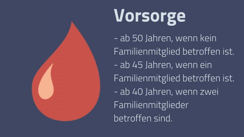 Durch Vorsorge kann man Prostatakrebs entdecken, bevor er streut. Die Vorsorge läuft über die Hausärztin oder den Hausarzt mittels einer Blutentnahme. Im Blut wird der prostataspezifische Antigen-Wert (PSA-Wert) ermittelt. Liegt dieser bei Männern im Alter von 50 bis 75 Jahren bei 0 bis 1, ist die Wahrscheinlichkeit klein, dass sich in den nächsten Jahren Krebs entwickelt. Ist der Wert höher als 3, so bedeutet das nicht automatisch Krebs. Betroffene sollten jedoch eine weitere Abklärung bei einer Urologin oder einem Urologen vornehmen lassen.