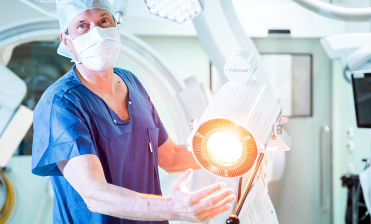 Gemäss Hartel lassen sich diese Entzündungen nicht komplett verhindern, aber deutlich verringern. Genau das ist ihm im Rahmen zweier Studien an den Universitäten in Heidelberg und München gelungen – und wird von Hartel und seinem Team am Kantonsspital Aarau umgesetzt: Die Infektionsrate nach bauchchirurgischen Eingriffen hat sich damit um über 50 Prozent reduziert. Hinter dieser Zahl steht eine ebenso einfache wie effektive Methode, die in Aarau schon seit einigen Jahren angewendet wird: die Behandlung mit wassergefilterten Infrarot-A-Strahlen, kurz wIRA.